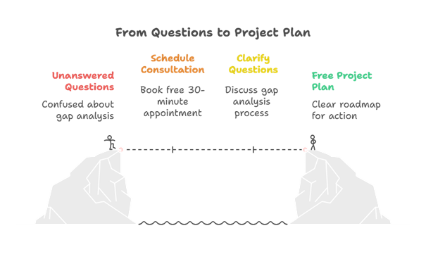 Protect yourself. Schedule your free 30-minute consultation now to clarify your questions about the 5-day gap analysis process and receive your free project plan.
