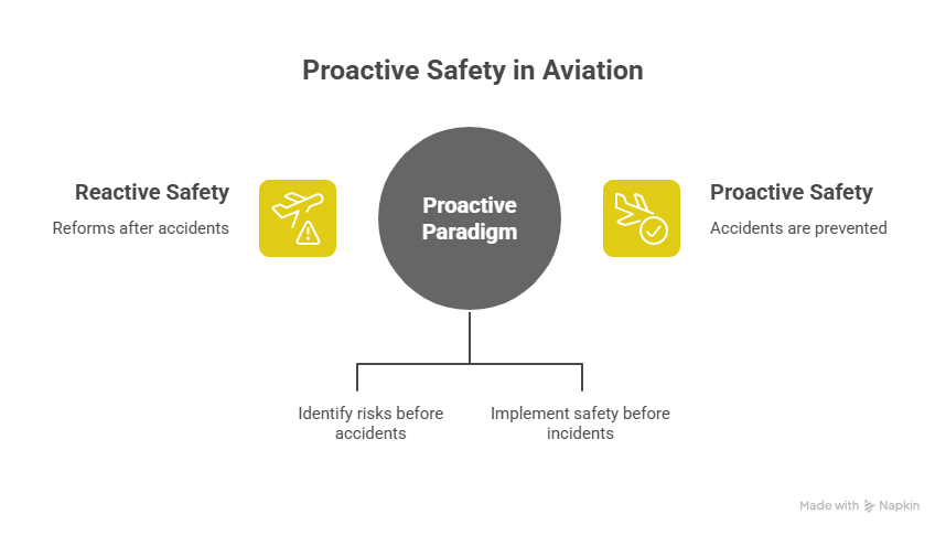 Why is aviation the safest mode of transport in the world? Because it operates in a high-risk sector where human error or technical defects can have immediate catastrophic consequences – much like a ransomware attack can drive a company into bankruptcy today. Aviation history teaches us that true safety was only achieved through the transition to a proactive paradigm. In the past, reforms were often merely reactions to accidents. Today, the Aviation Safety Management System (SMS) is based on identifying hazards before they lead to accidents.