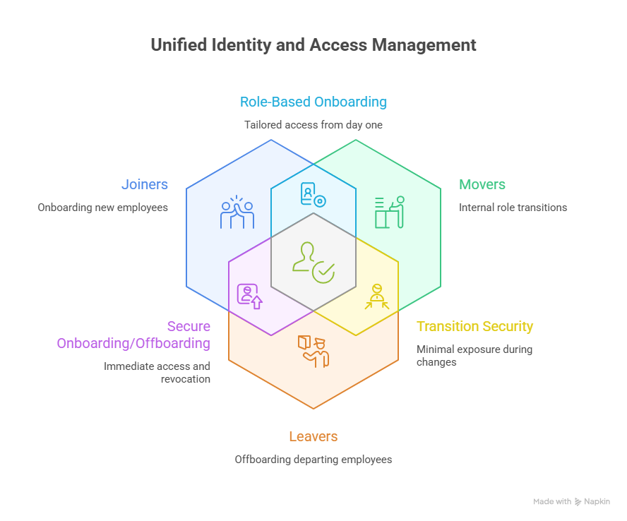 Managing digital identities throughout their entire lifecycle is a cornerstone of effective identity security. The Joiner-Mover-Leaver (JML) process ensures that user access is continuously aligned with an individual’s role within the organization. As employees join, change positions, or leave, their access rights must be granted, adjusted, or revoked in a timely and controlled manner. When implemented correctly, a well-structured JML process strengthens security, supports regulatory compliance, and minimizes operational risk.