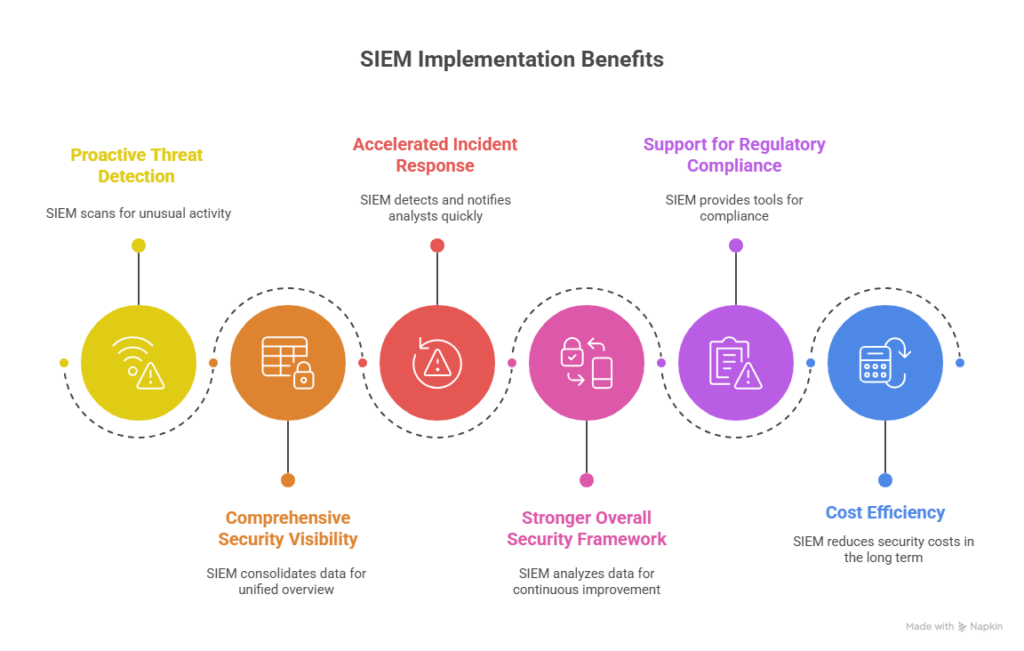 Implementing a SIEM solution offers organizations far more than just threat detection. By centralizing security data and providing actionable insights, SIEM empowers businesses to respond faster, strengthen their defenses, and maintain compliance. The following benefits highlight why SIEM has become a critical component of modern cybersecurity strategies.